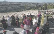Los fieles esgrimían palmas y marcharon al tope del Monte de Olivos en la Ciudad Antigua de Jerusalén.