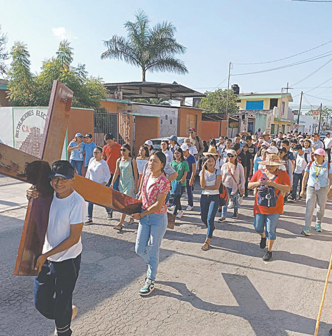 Los migrantes, en su mayoría venezolanos que se mantienen varados en esta ciudad fronteriza, participaron en la representación de la Crucifixión de Cristo, caminaron en caravana, en muchos casos se quitaron los zapatos para andar descalzos hasta llegar a las instalaciones del Instituto Nacional de Migración (INM), donde ocurrió la tragedia.