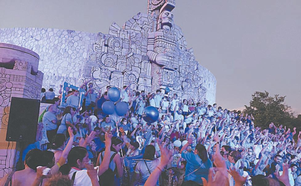 AL pie del Monumento a la Patria, iluminado en color azul, se escucharon testimonios de autistas y sus familiares, que llamaron a fomentar la inclusión en la sociedad.- (Daniel Silva)