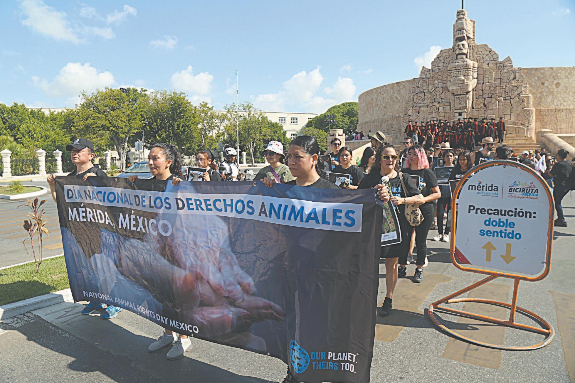 CON una marcha desde el Monumento a la Patria hasta el Remate de Paseo de Montejo, ambientalistas exigieron acciones urgentes para frenar los casos de maltrato animal.- (Saraí Manzo)