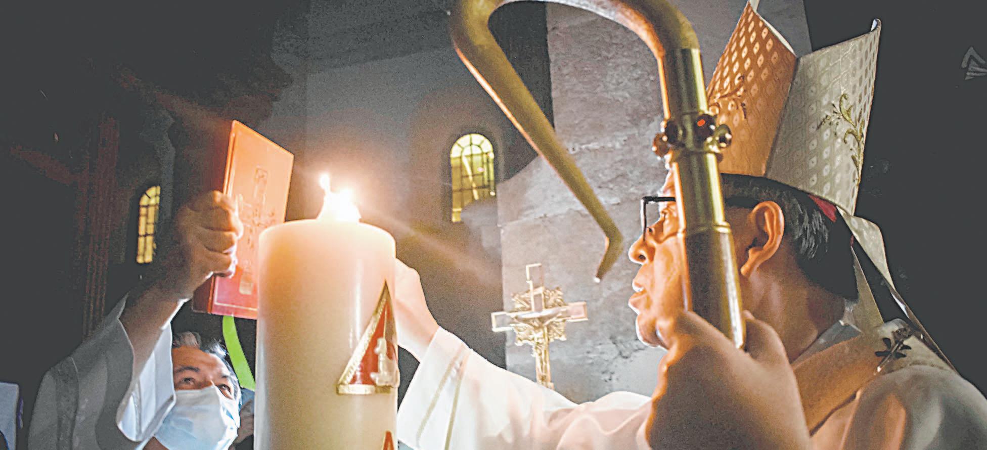 Al inicio de la Vigilia Pascual, Francisco -que llegó en silla de ruedas debido a una dolencia en la rodilla- grabó una cruz en la cera de un cirio, así como la primera y última letra del alfabeto griego (alfa y omega) y el año. Un clérigo llevó el cirio encendido por el pasillo central de la basílica, entre los bancos a oscuras ocupados por los fieles. Decenas de cardenales y otros prelados lo siguieron portando velas.