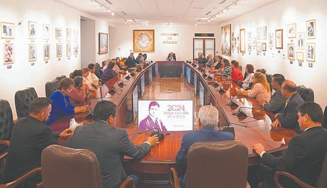 presentó en la conferencia mañanera, en lo que va del sexenio se han realizado mil 353 sesiones del Gabinete de Seguridad, de las cuales 143 han sido en los Estados del país. Se reportó a Veracruz con 11 sesiones; Oaxaca y Sonora con ocho; Guerrero, Quintana y Tabasco con siete; Baja California, Baja California Sur, Ciudad de México, Jalisco y Puebla con seis sesiones, son las En-