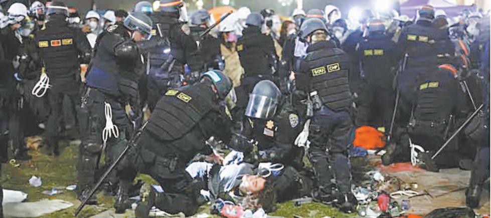 LOS ÁNGELES.- Al menos 200 personas fueron arrestadas ayer en la Universidad de California, Los Ángeles (UCLA), con lo que el total de detenciones en todo el país ascienda a más de 2 mil en docenas de campus universitarios desde que la Policía desmanteló un campamento en la Universidad de Columbia a mediados de abril, según un recuento de The Associated Press. Las manifestaciones se han producido en casi todos los rincones de la nación. Pero en las últimas 24 horas, casi toda la atención se dirigió a la UCLA, donde hubo escenas caóticas ayer, cuando policías con equipo antimotines arremetieron contra un grupo de manifestantes. La Policía retiró barricadas y empezó a desmantelar un campamento fortificado de manifestantes pro palestinos en el campus de la UCLA después de que cientos de inconformes desafiaron las órdenes policiales de que se marcharan; algunos de ellos formaron