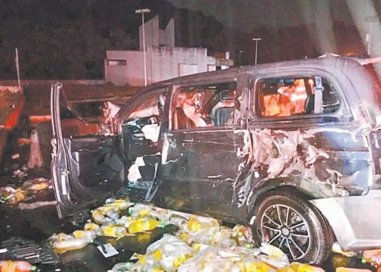 LOS reportes oficiales señalan que un tráiler cargado con refrescos se volcó e impactó contra tres camionetas; la unidad presuntamente responsable iba a exceso de velocidad.- (Cuartoscuro)