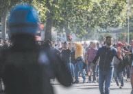 enfrentamiento con la Policía, que formó un muro humano.