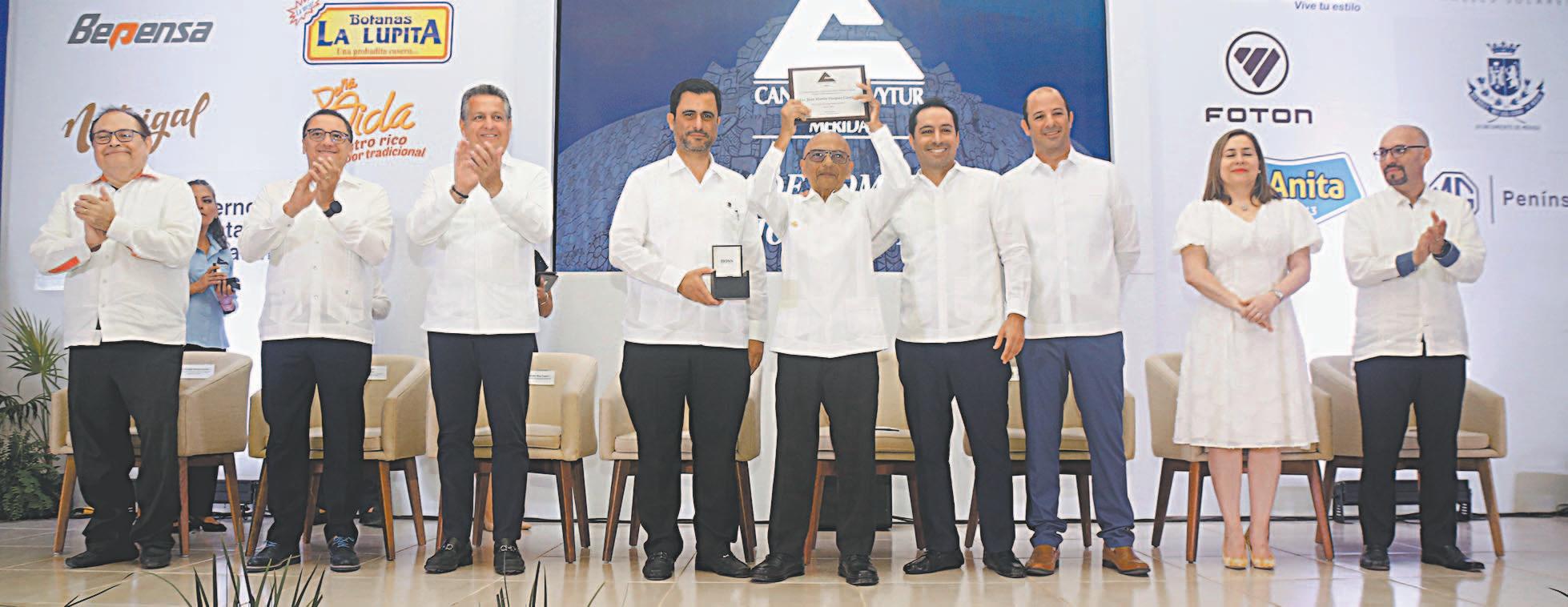 EL aspirante a la gubernatura de la coalición Sigamos Haciendo Historia se comprometió ante empresarios a conectar Hunucmá con Progreso, vía el Tren Maya, para atraer más capitales al Estado.- (Nadia Tecuapetla)