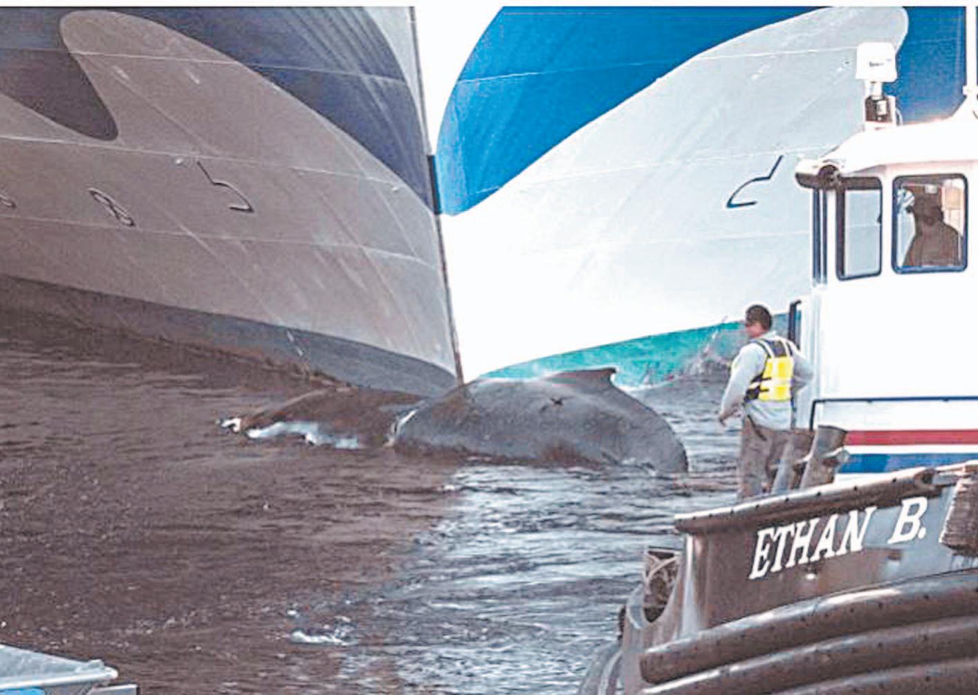 La ballena, identificada como un ejemplar de la especie sei , quedó atrapada en la proa del barco cuando éste llegó al puerto de Brooklyn el sábado, dijo Andrea Gómez, vocera de pesca de la Oficina Nacional de Administración Oceánica y Atmosférica de Estados Unidos.