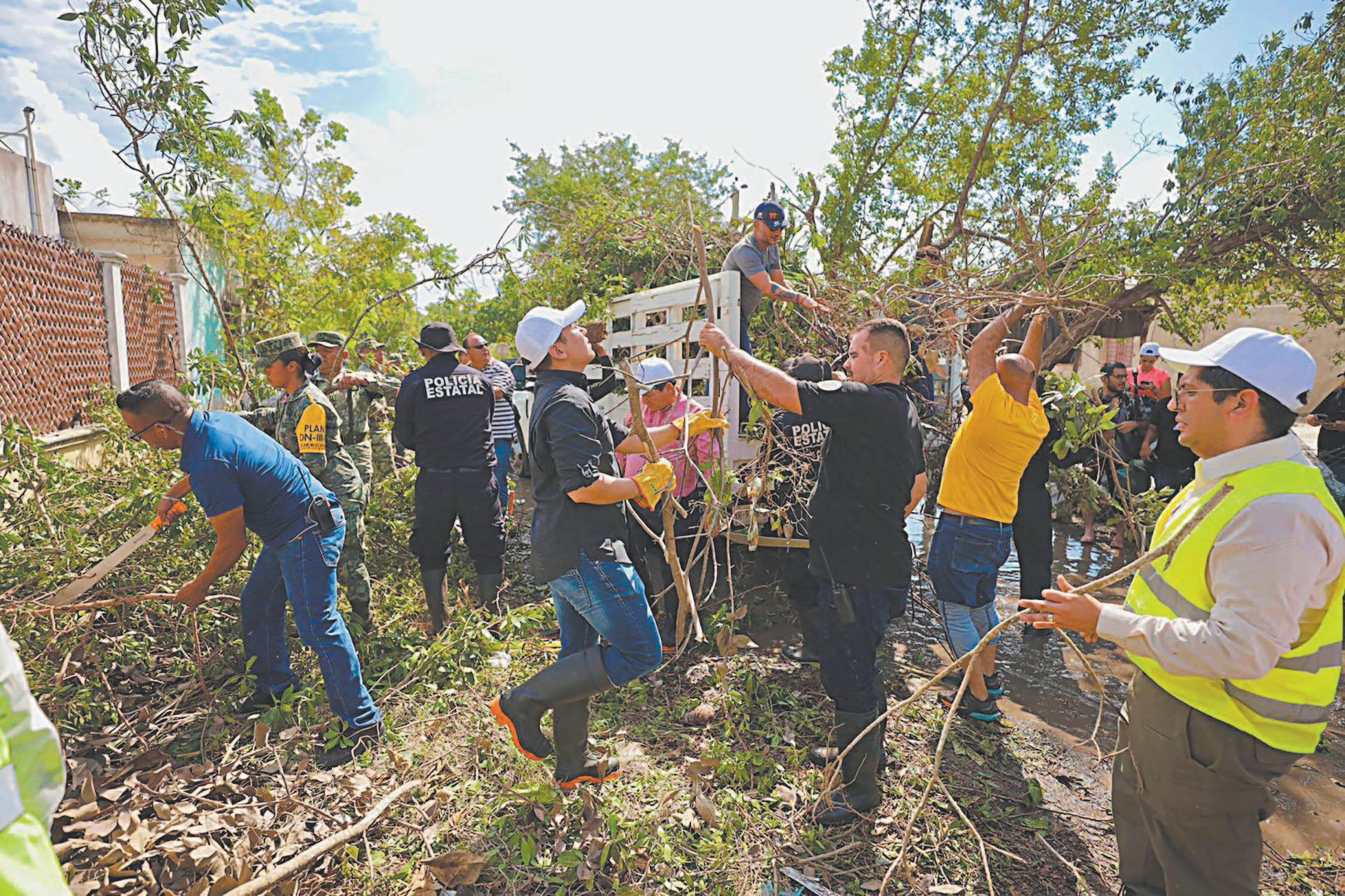 PARA las tareas de limpieza, el municipio celestunense fue dividido en 15 sectores, a los que acudieron ciudadanos, funcionarios y militares con palas, picos, rastrillos, motosierras y carretillas para levantar los escombros que dejó el paso de Milton.- (POR ESTO!)