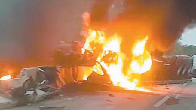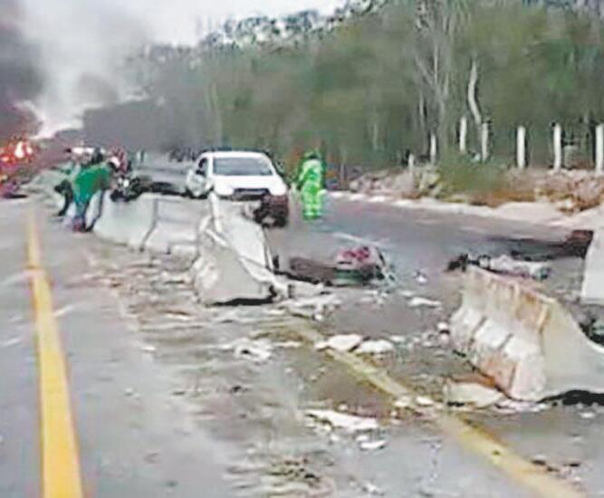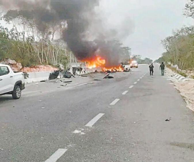 Pesadilla para un chofer: dormitó en la Mérida-Cancún, volcó su tráiler y se quemó