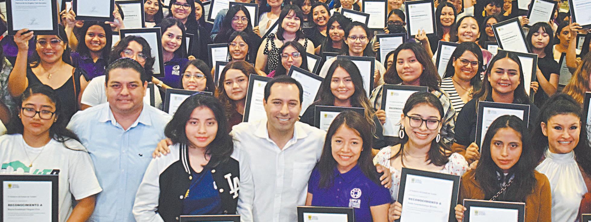 EL gobernador Mauricio Vila encabezó la presentación de resultados del programa “Stemos Juntas para el Futuro Tecnológico de Yucatán”, en el que nueve universitarias recibieron reconocimientos.- (Daniel Silva)