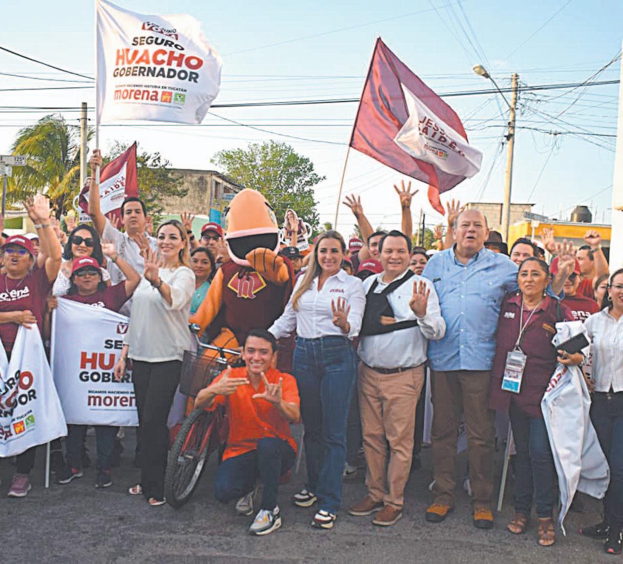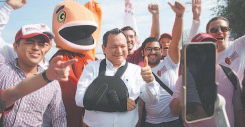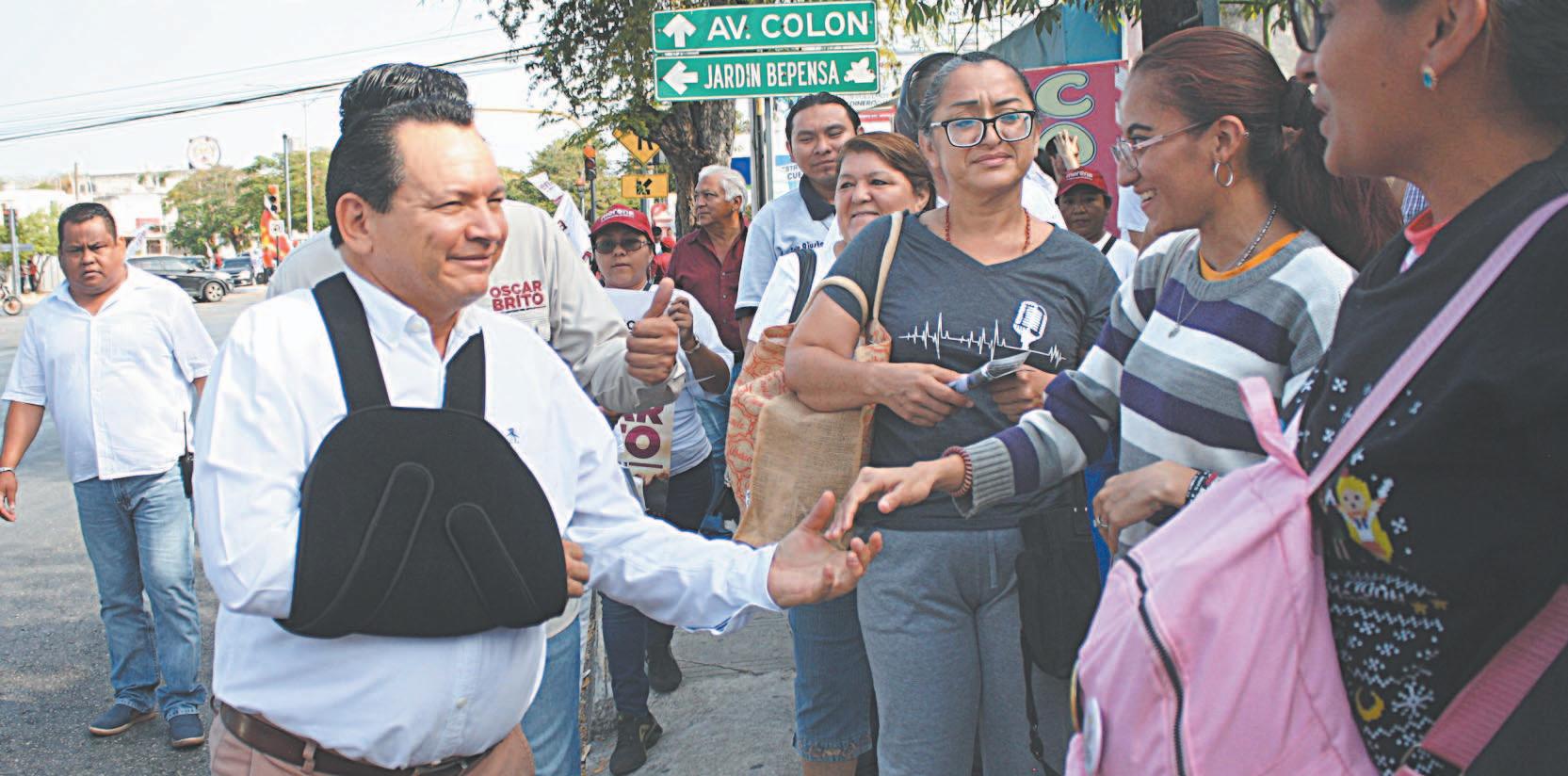 EL candidato de Sigamos Haciendo Historia a la gubernatura encabezó un volanteo masivo en la avenida Itzáes con calle 59, en el crucero del hospital O’Horán, y luego una caminata por la Serapio Rendón.- (Daniel Silva)