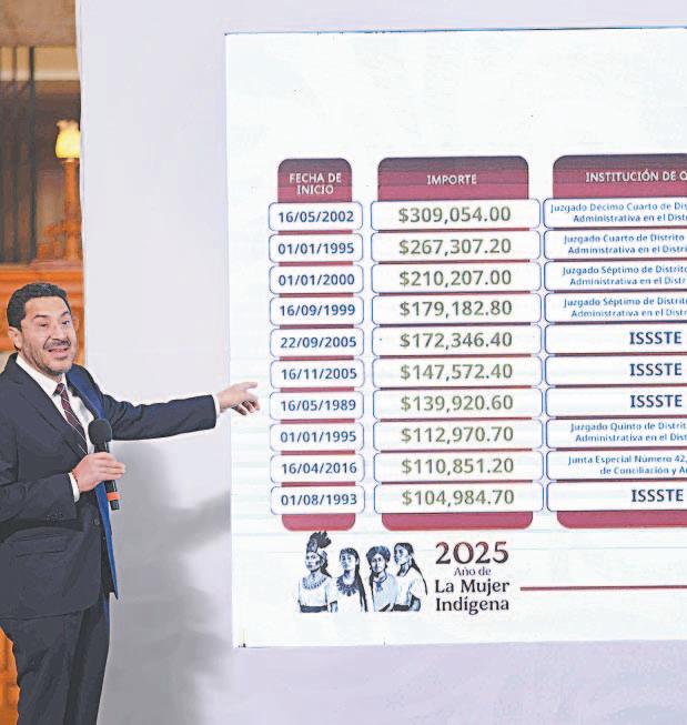 Otro de los puntos es concretar acuerdos con IMSS-Bienestar y otras instituciones públicas de salud para que las personas puedan ser atendidas en las unidades más cercanas. Batres indicó que como parte de las acciones está priorizar el acceso a la vivienda para trabajadores con menores ingresos y beneficiar a más de 400 mil acreditados de Fovissste con eliminación de requisitos, liquidaciones, congelamientos, quitas y condonaciones. Por último, mencionó que se impulsará una reforma a la Ley del Issste para que disminuyan las 10 pensiones más altas en el Instituto, de hasta 309 mil pesos, que paga desde 2002, indicando que “como siete de estas pensiones son superiores al ingreso de la Presidenta de México”.