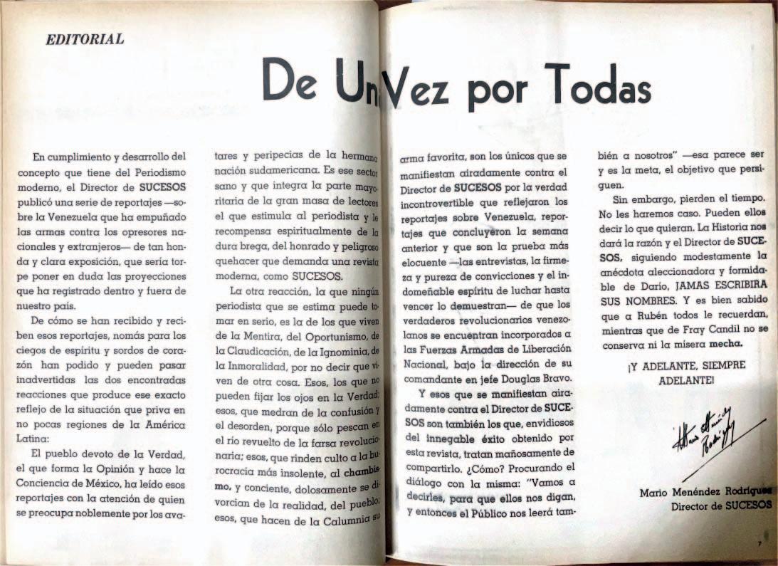 Mario Renato Menéndez Rodríguez: Una vida entregada al periodismo / Miembro de una dinastía periodística de posturas definidas / “El porqué de Mario”, la fundación de su revista / Memoria gráfica, un recorrido en imágenes , Especial 26 a 33 / 34 a 39 / 52 a 57