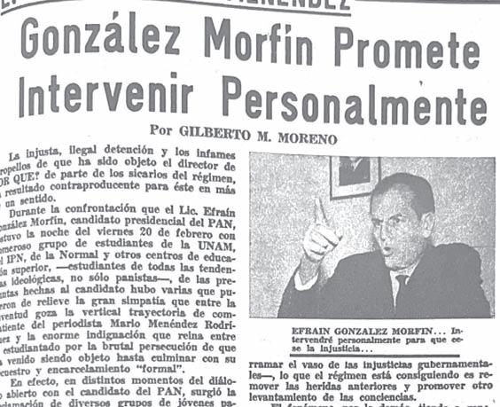 La libertad existe o no. Si la prensa es amenazada en su libertad, si el estudiante es amenazado en la suya, si el obrero, si el campesino, si el hombre de la calle, la cual cualquiera que sea se siente impedido para vivir dentro de los postulados de la ley fundamental de México, nos reunimos con los puños apretados, no para agredir, sino para defendernos. De ahí que yo, periodista independiente, acuda a la cita que me dan los estudiantes y maestros de México que sienten amenazada su libertad. La libertad de ustedes es la nuestra, la de todos.