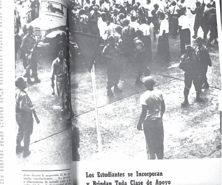 La presencia en estas filas de un periodista independiente añada un significado que no puedo olvidarse; no existe eso que se quiere dominar “El Poder Estudiantil”, como tampoco “Poder Negro”, ni el “4to. Poder”. Son denominaciones inventadas por mercenarios de la pluma de provocadores para hacer creer que tratamos de establecer un poder dentro de otro, un Estado dentro de otro. No, es el pueblo frente al despotismo: el pueblo que se alza a la defensa de lo suyo, que es la dignidad, exigiendo el respeto a la Carta Fundamental en todos sus matices. Esto es lo que hoy se alza, a lo que me adhiero; siempre entregué mis sueños a la independencia periodística, entre los cuales figura preeminentemente el de estar en aptitud de decir la verdad, sólo la verdad, nada más que la verdad, de modo que todos tengan derecho a saberla, y, disfrutándola, puedan organizar su vida dentro de una correcta formación que le sirva de norma a sus luchas reivindicadoras. La verdad dicha sin ambages al poder público, para que se le respete y atienda. Nosotros, señores, no podemos ser libres sino lo son todos