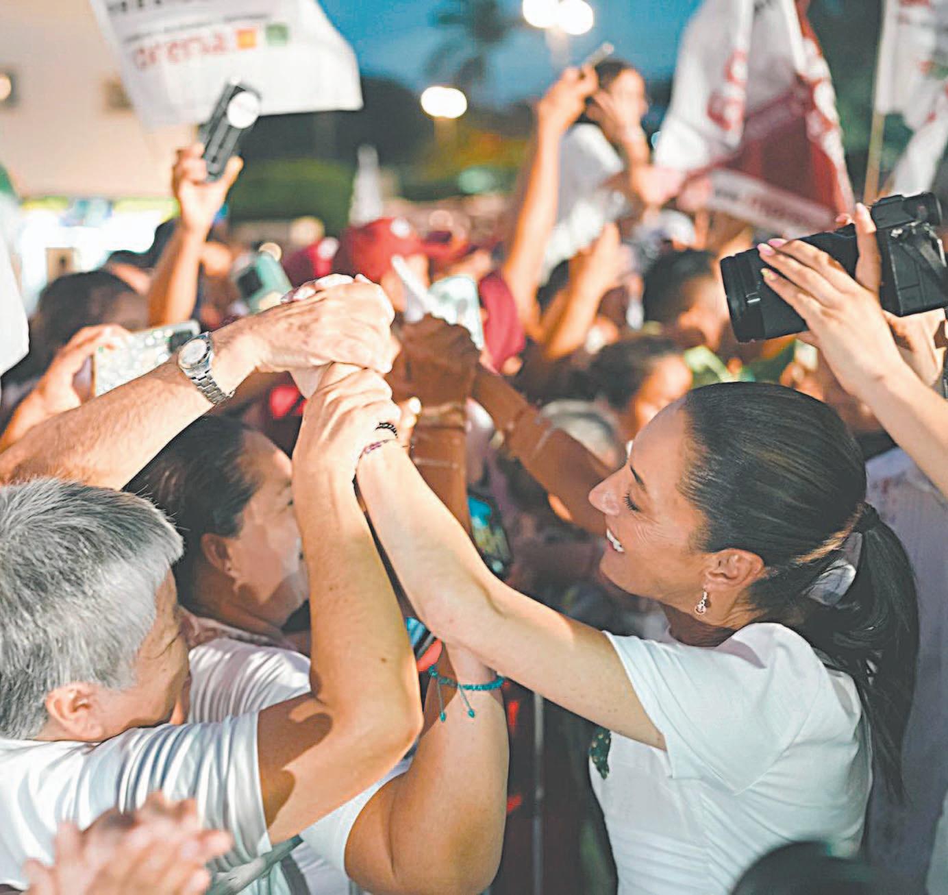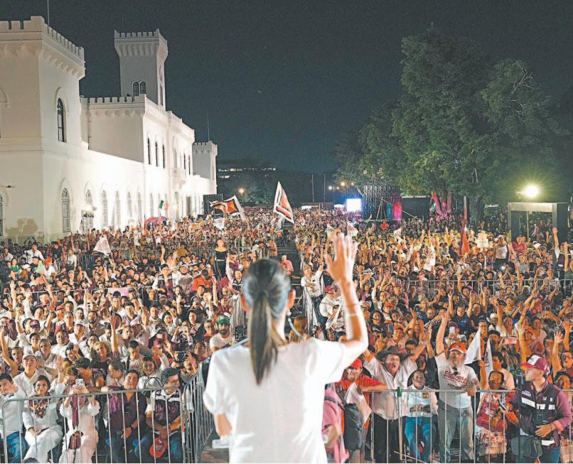 EN un encuentro con empresarios, la aspirante de la coalición Sigamos Haciendo Historia presentó, junto a Huacho Díaz Mena, contendiente a gobernador, la estrategia para el bienestar económico en el Estado. Más tarde, en charla con la directora general, Alicia Menéndez Figueroa, la candidata presidencial le expresó sus condolencias ante la reciente pérdida de su padre y reconoció al Fundador como un luchador social. Por la tarde, sostuvo un multitudinario mitin en el Parque de La Paz.- (POR ESTO!)