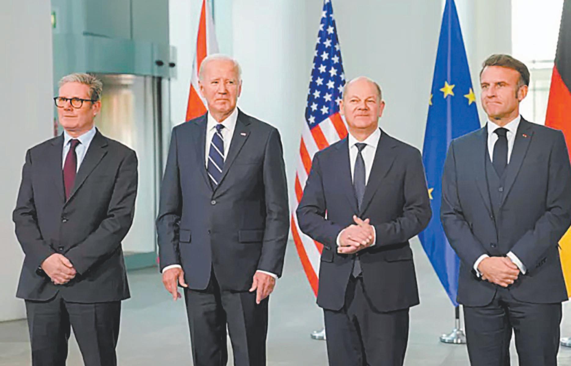 BERLÍN.- Los máximos líderes de Estados Unidos, Alemania, Reino Unido y Francia pidieron ayer, tras una reunión en Berlín, poner fin a la guerra entre Israel y Hamás en Gaza, después de la muerte del líder del movimiento islamista palestino, Yahya Sinwar. Joe Biden, Olaf Scholz, Keir Starmer y Emmanuel Macron hablaron de las “implicaciones” de la muerte del exjefe de Hamás y de “la necesidad inmediata de devolver a los rehenes (israelíes) a sus familias, de detener la guerra en Gaza y de garantizar que la ayuda humanitaria llegue a los civiles”, señaló un comunicado publicado por el Gobierno alemán tras el encuentro. En coincidencia, Hamás confi rmó ayer que Sinwar fue asesinado por Fuerzas israelíes en Gaza, y reiteró su posición de que los rehenes que el grupo capturó en Israel hace un año no serán liberados hasta que haya un cese al fuego en Gaza y un retiro de las tropas israelíes.