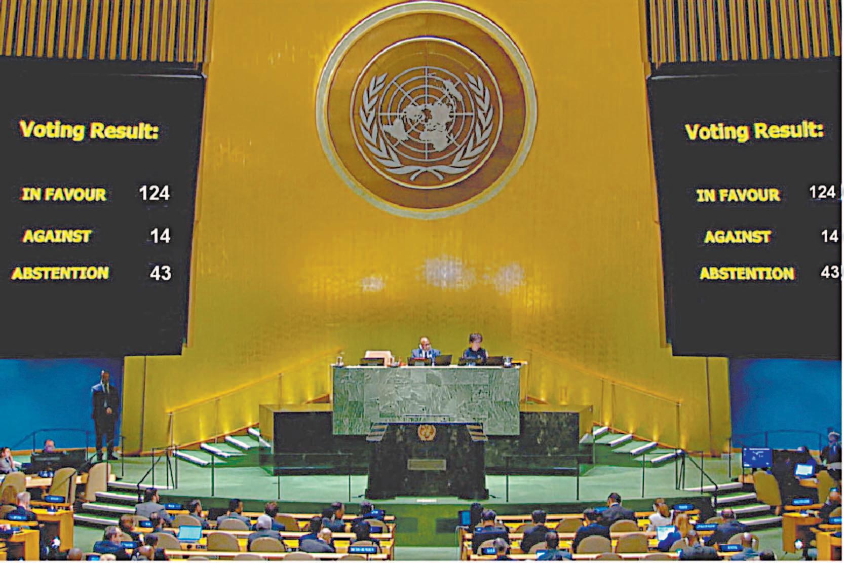La resolución que desde el martes debatían los 193 Estados miembros de la ONU sigue el dictamen de la Corte Internacional de Justicia (CIJ) que, en julio, al examinar la ocupación israelí desde el 1967 a petición de la Asamblea General, determinó que “la presencia continuada de Israel en los Territorios Palestinos Ocupados es ilegal”, y que Israel tiene “la obligación (de) ponerle fin (...) lo antes posible”.