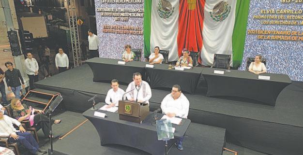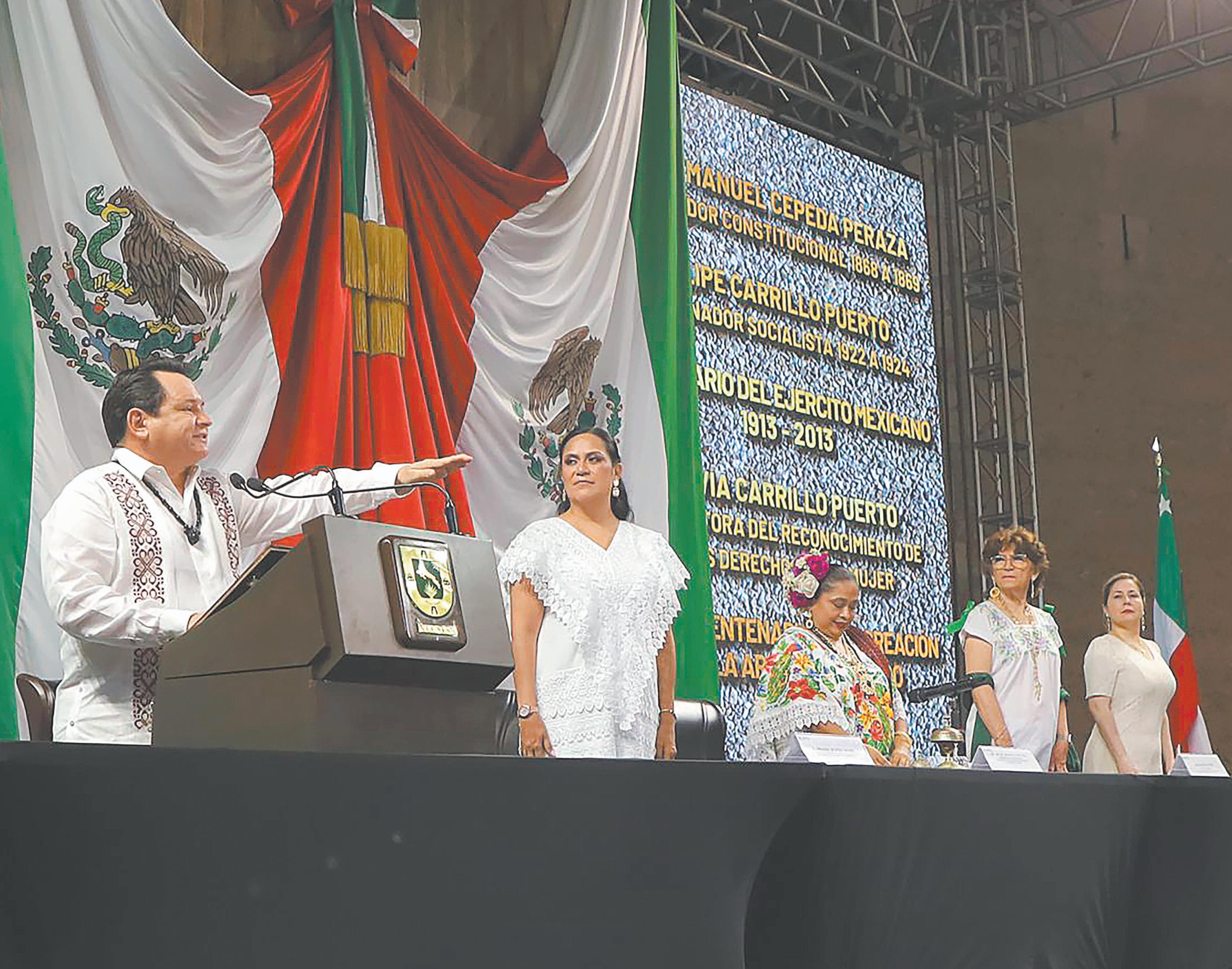 En una Plaza Grande que enmarcó la Sesión Solemne del Congreso, Joaquín Díaz Mena rinde protesta como Gobernador Constitucional; miles de personas, de todas las edades, atestiguan el acto sin precedentes / Ofrece trabajar incansablemente para acabar con las desigualdades históricas; detalla que el Renacimiento Maya será el eje transformador en los próximos seis años