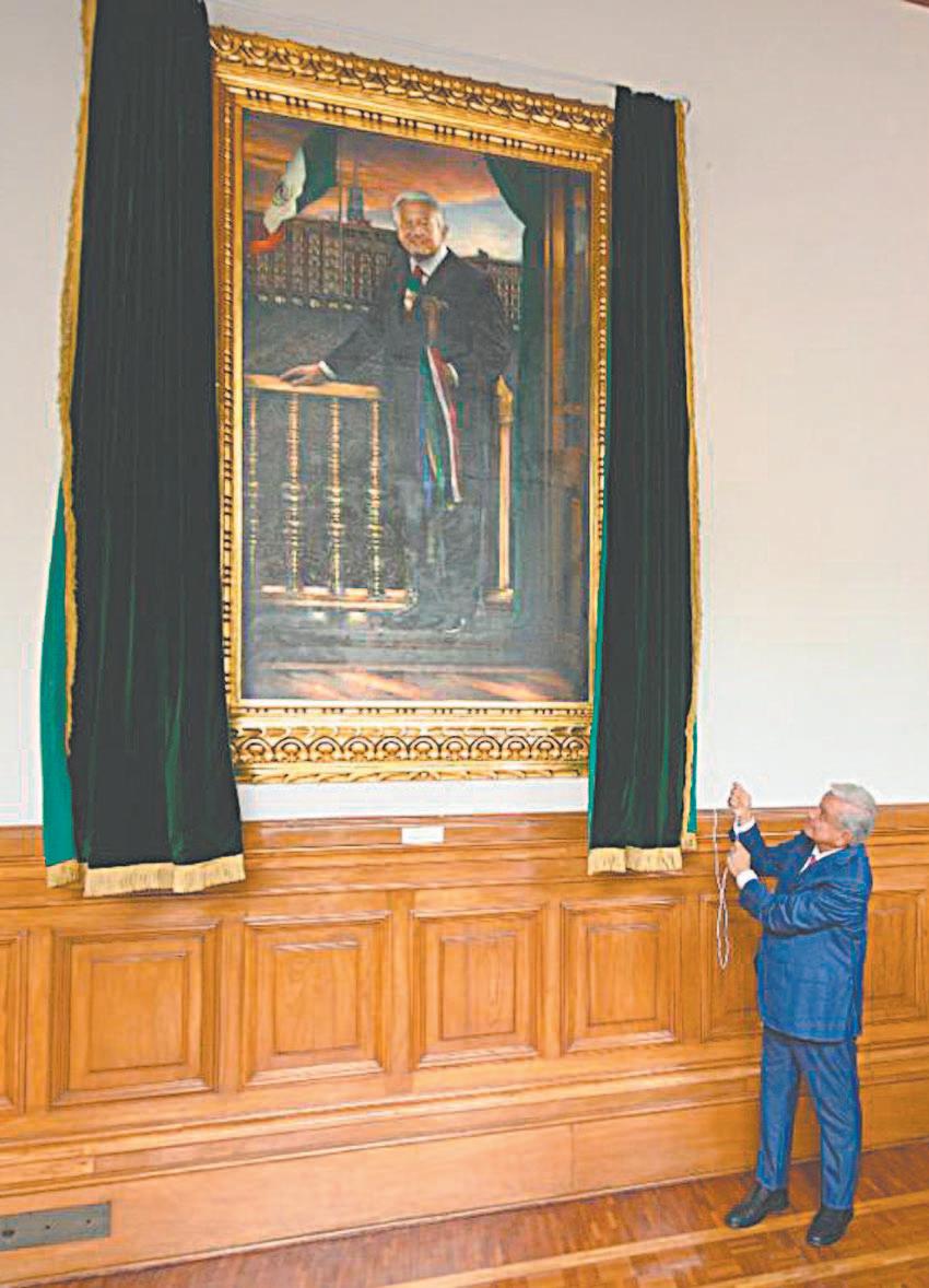Como parte de sus actividades de ayer, el presidente López Obrador develó su retrato en óleo que estará colgado en la Galería de las Presidentes en Palacio Nacional. La Oficina de la Presidencia de la República encargó la obra al artista yucateco Jorge Ermilo Espinosa Torre.