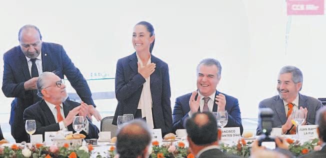 CLAUDIA SHEINBAUM PRESIDENTE DE MÉXICOPor otro lado, Sheinbaum pidió a los empresarios trabajar en la relocalización de empresas y polos del bienestar, haciendo énfasis en impulsar la zona del Aeropuerto Internacional Felipe Ángeles