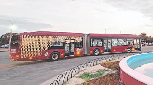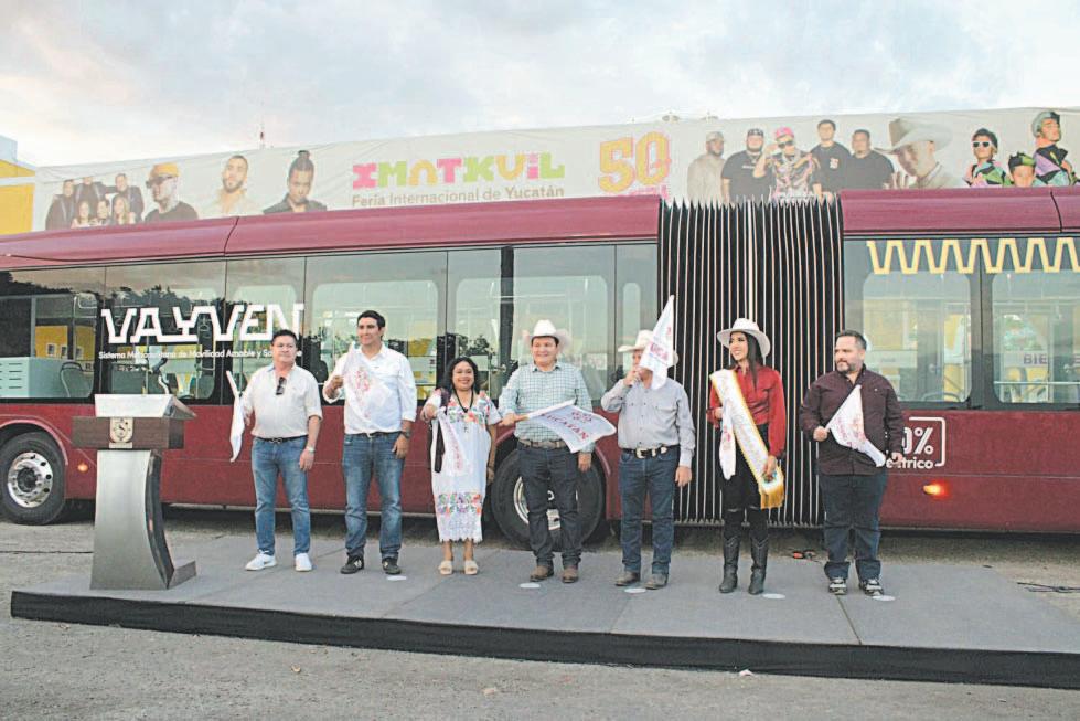 Gobierno estatal presentó las unidades 100% eléctricas, de color guinda por el Renacimiento Maya, que circularán durante las horas pico del circuito exterior de la capital, con frecuencia de uno por cada tres de los que prestan normalmente el servicio, para recoger a los viajeros “rezagados”.- (Nery Morales)