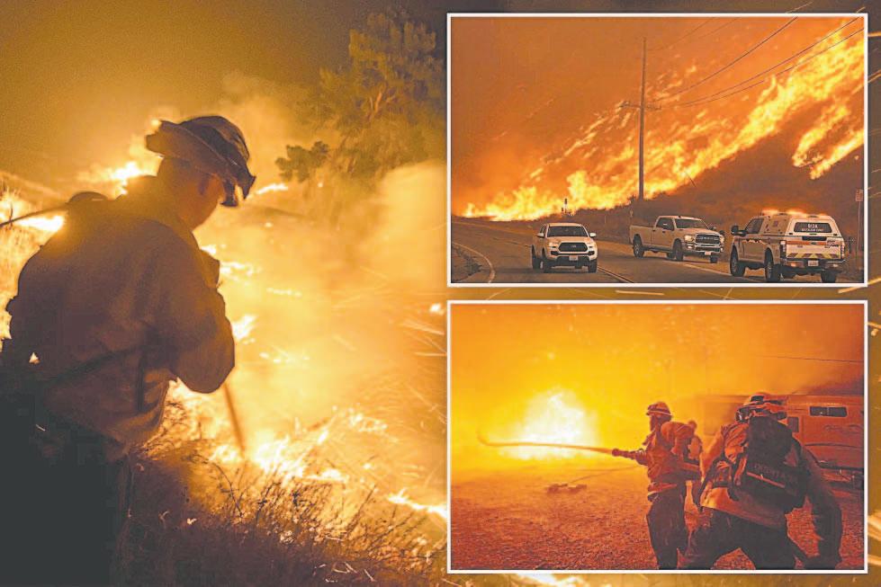 CASTAIC.- Los bomberos luchan por mantener la ventaja sobre un enorme y rápido incendio forestal que arrasó las escarpadas montañas al Norte de Los Ángeles y provocó que más de 50 mil personas recibieron órdenes o advertencias de evacuación.