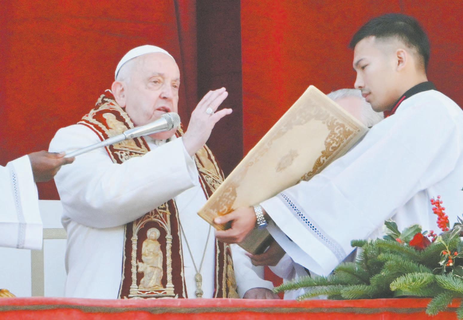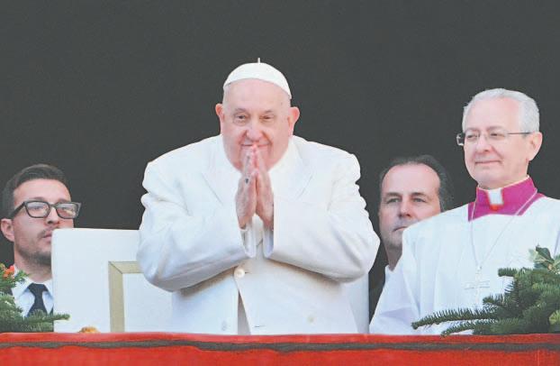 En su mensaje tradicional de Navidad Urbi et Orbi (A la Ciudad y al Mundo), el Papa Francisco instó ayer a “todos los pueblos de todas las naciones” a encontrar el valor durante este Año Santo “para silenciar los sonidos de las armas y superar las divisiones” que afligen al mundo, desde Medio Oriente hasta Ucrania, África hasta Asia.