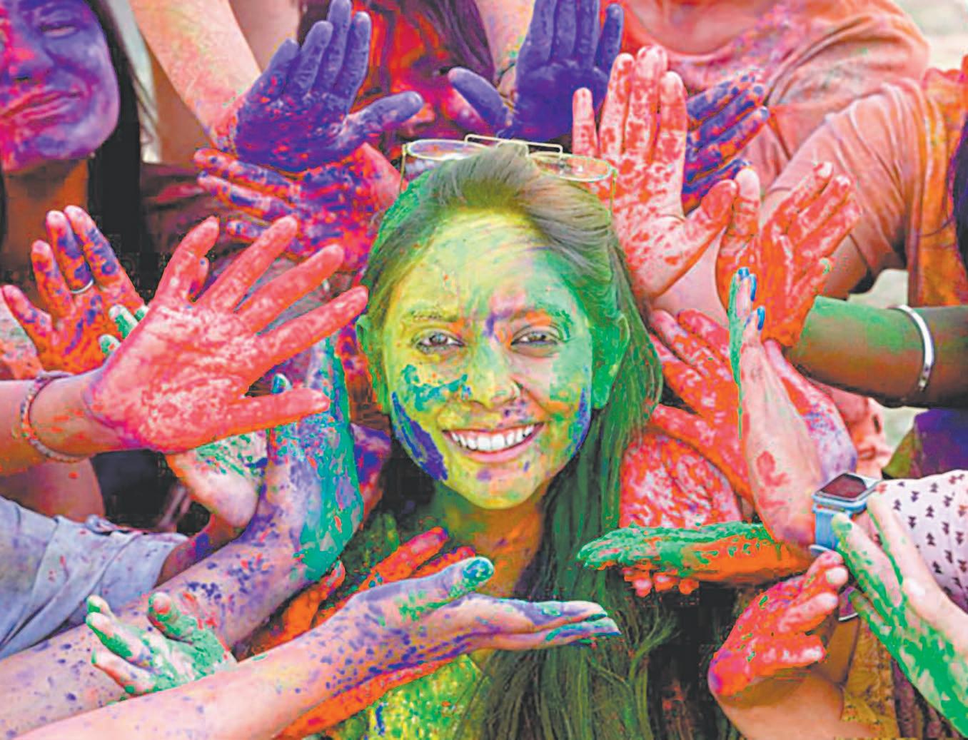 Millones de personas en la India celebraron ayer el festival Holi , bailando con música alegre, intercambiando comida y bebida y untándose unos a otros polvos rojos, verdes, azules y rosas, convirtiendo el aire en un alegre caleidoscopio de colores. El Holi , conocido por muchos como el festival hindú de los colores , marca la llegada de la temporada de primavera a la India, Nepal y otros países del Sur de Asia, así como a la diáspora. Celebra el amor divino entre el dios hindú Krishna y su consorte Radha , y significa un tiempo de renacimiento y rejuvenecimiento, abrazando lo positivo y dejan-