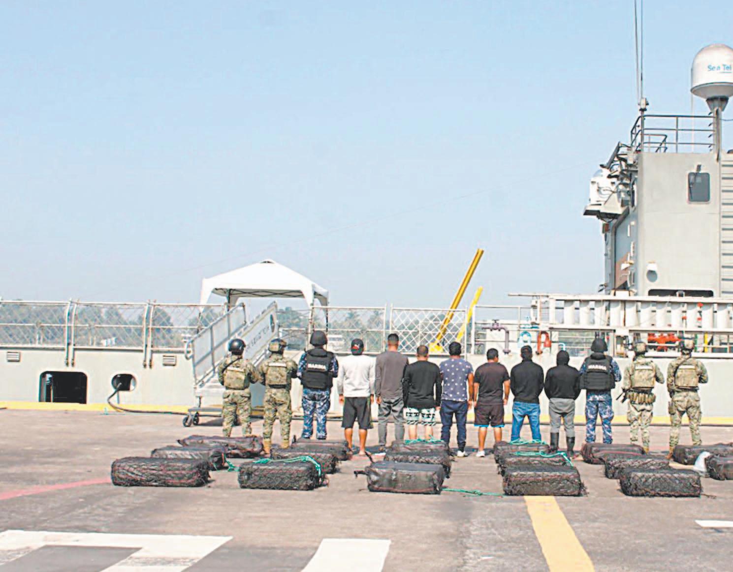 Posteriormente, se desplegó personal naval a bordo de unidades de superficie (buques), asegurando dos embarcaciones; una de ellas con dos tripulantes a bordo, quienes transportaban 11 bultos, y la segun-