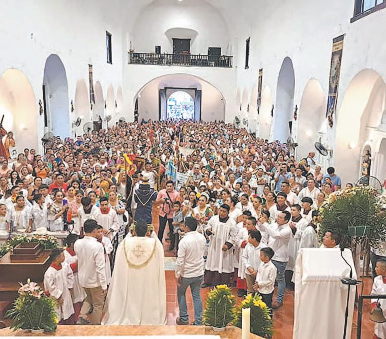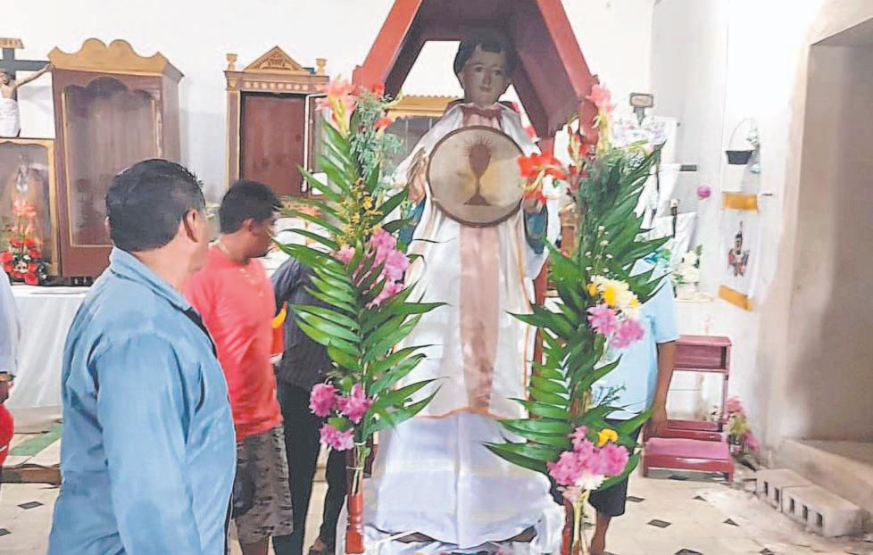 Entre rezos y cantos, bajan de su nicho a San Antonio de Padua, en Tekit