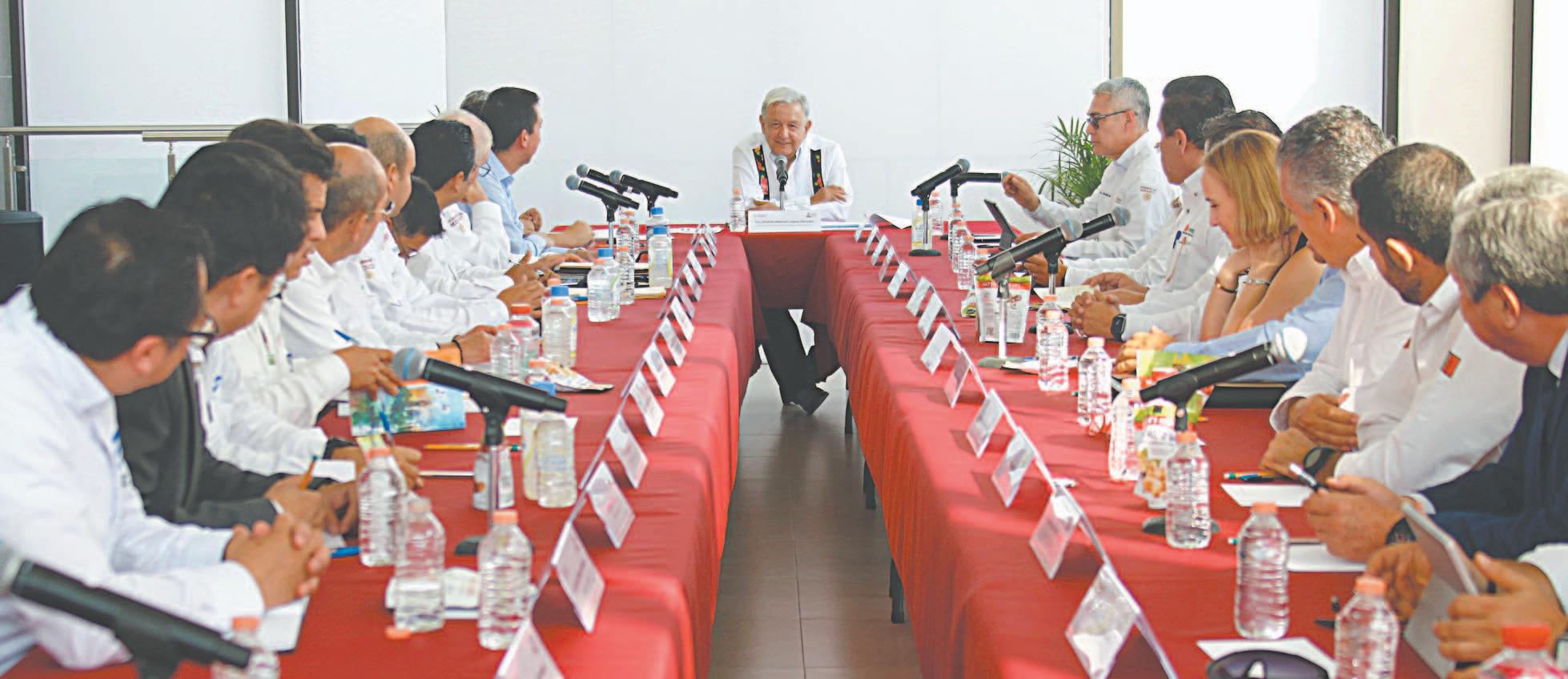 En la reunión de ayer, acompañaron a López Obrador los goberna- dores de Nayarit, Miguel Ángel Navarro Quintero, y de Baja California Sur, Víctor Manuel Castro Cosío. También estuvieron presentes el secretario de Salud, Jorge Alcocer Varela; el director general del Instituto Mexicano del Seguro Social, Zoé Robledo Aburto; la subsecretaria de la Función Pública, Thalía Concepción Lagunas Aragón; y el subsecretario de Egresos de la Secretaría de Hacienda y Crédito Público, Juan Pablo de Botton Falcón. Asimismo, estuvieron en el encuentro el director general del IMSS Bienestar, Alejandro Calderón Alipi; el director general de Laboratorios de Biológicos y Reactivos de México (Birmex), Jens Pedro Lohmann Iturburu, y el titular de la Unidad de Infraestructura de IMSS Bienestar, Carlos Sánchez Meneses, así como representantes y autoridades estatales en materia de salud de Nayarit y Baja California Sur. El presidente López Obrador ha mencionado que será en septiembre, el último mes de su administración, cuando comenzará a izar la bandera blanca, en señal de que estarán federalizados los servicios de salud del programa IMSS-Bienestar.