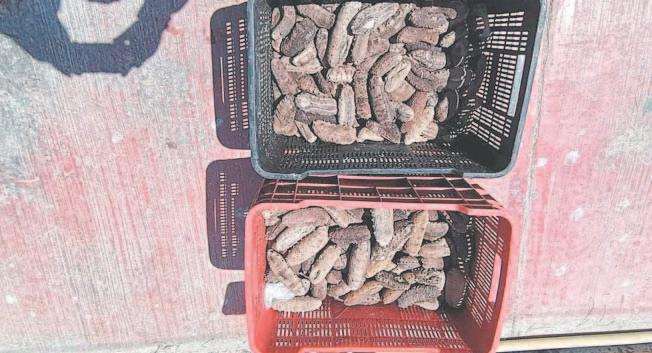 Doble decomiso en Progreso: pepino de mar y miles de tenis piratas