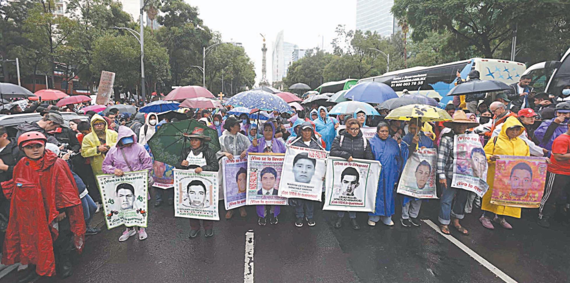 Frente a miles de personas que los acompañaron en toda la marcha desde el Ángel de la Independencia, Hilda Legideño, madre de Jorge Antonio Tizapa, dijo que los padres y madres de los normalistas “seguiremos adelante, nos asiste la razón, hay pruebas, hay informes que demuestran la participación de los militares. Exigimos que se entreguen los folios (militares) faltantes donde está toda la información de lo que ocurrió esa noche”. Igualmente, pidió a nombre de las familias que regrese el Grupo Interdisciplinario de Expertos Independientes (GIEI), “porque sólo ellos nos conducirán hacia el cami-