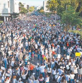 CULIACÁN, Sin.- A los pies de las escalinatas del Templo de la Lomita, ícono de Culiacán, la capital del estado de Sinaloa, miles de ciudadanos, adultos, jóvenes y niños, clamaron por la paz y la tranquilidad en la entidad, en la segunda marcha bajo la consigna Con los niños no y en la que la demanda que más se escuchó fue ¡Fuera Rocha! Activistas y jóvenes, hombres y mujeres, cubrieron la fachada del Palacio Municipal con cientos de cartulinas en las que reclamaron a las autoridades estatales y partidos políticos que consideran responsables del clima de violencia que envuelve, no sólo a Culiacán, sino a otros municipios de la entidad. En el centro de la ciudad se colocaron posters con el rostro del
