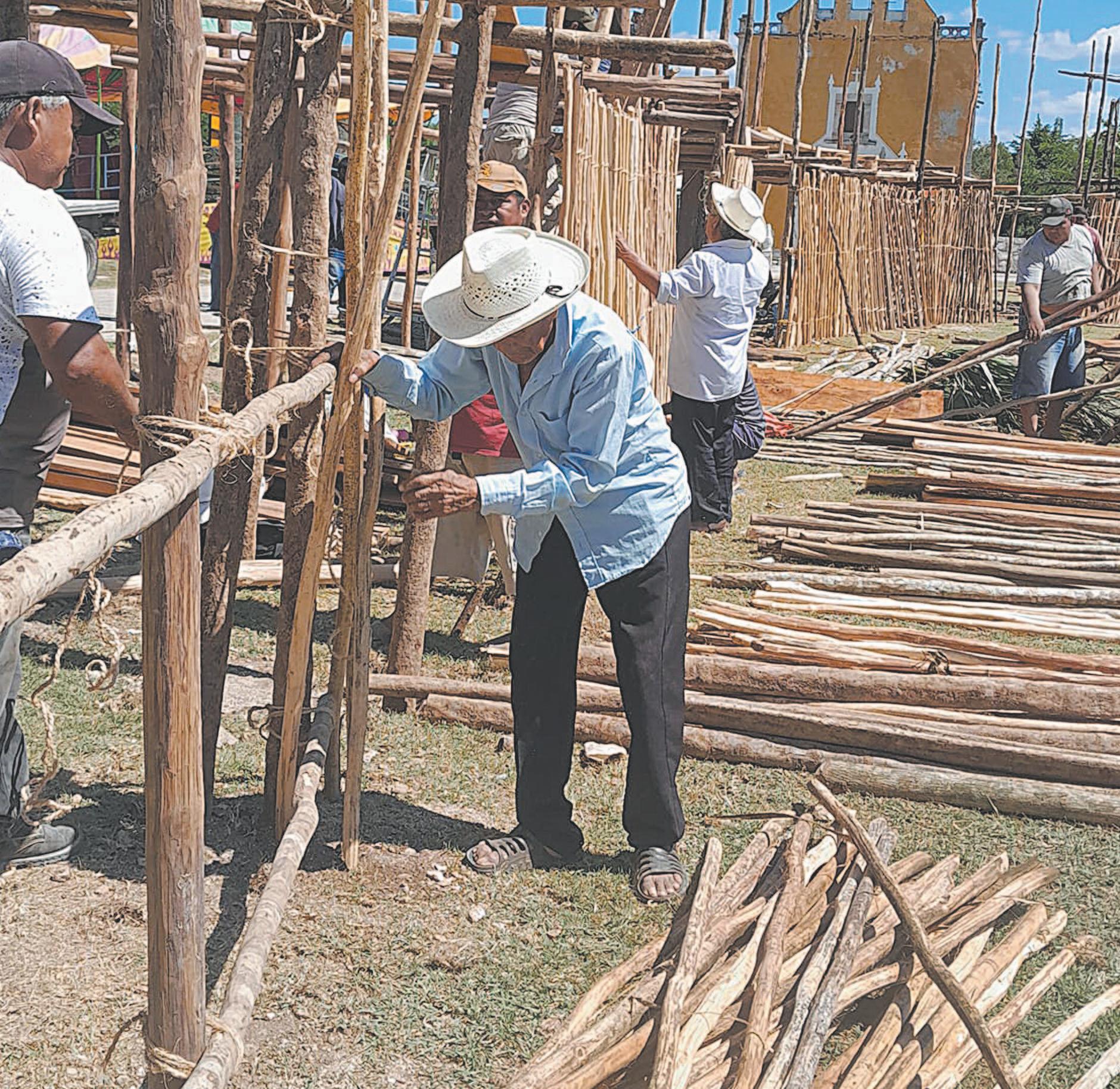 Palqueros preparan el coso taurino en Yaxcabá para el baxal-toro