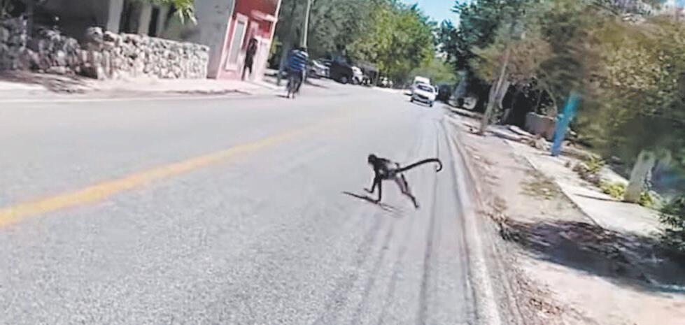 Monos araña deambulan en calles y patios de casas de Dzidzantún