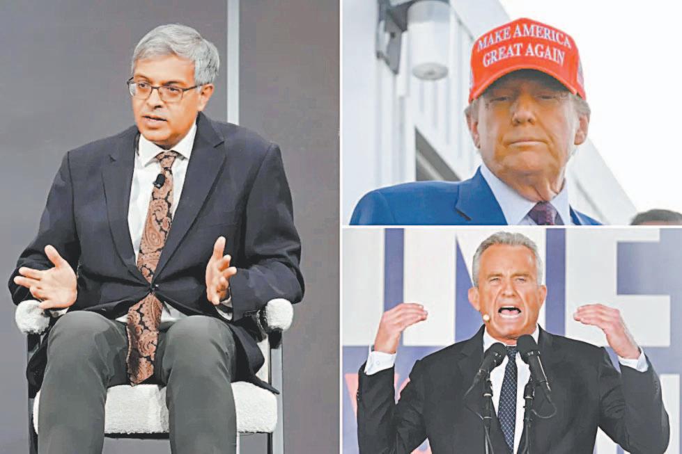 Bhattacharya (i.) trabajará con Kennedy Jr. (d-abajo.), en Salud y Servicios Humanos. (Agencias)