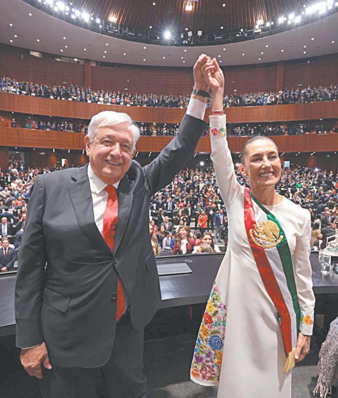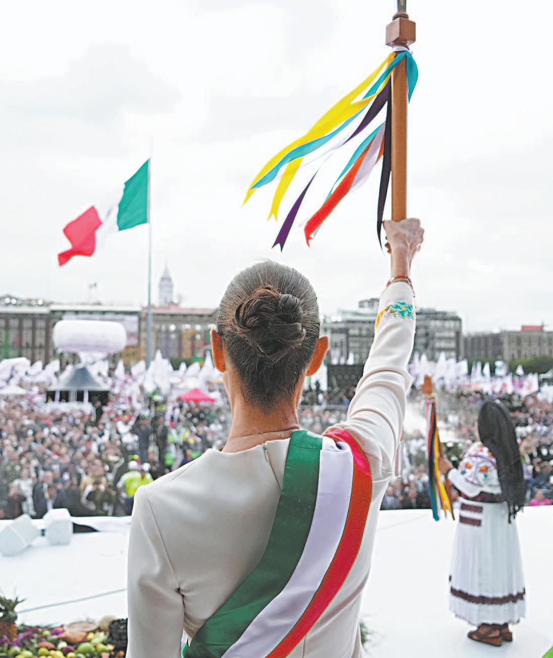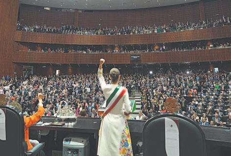 DESPUÉS de 200 años de la conformación de la República y de 300 años de la Colonia, el país fue testigo ayer de la llegada de todas las mujeres a conducir los destinos de la nación, encarnadas por sólo una que tomará las decisiones más importantes durante los próximos seis años. En un acto lleno de simbolismos, ante más de 105 dignatarios del mundo, la Mandataria recibió la Banda Presidencial de manos de la líder izquierdista Ifigenia Martínez y, en la máxima tribuna, expresó que como madre, abuela y científica, pero ahora, como Jefa de Estado, refrenda su compromiso de gobernar para todas y todos, bajo los principios del Humanismo Mexicano que serán la base en la construcción del Segundo Piso de la Cuarta Transformación. Horas después, frente a Palacio Nacional, y ante casi medio millón de ciudadanos que acudieron a vitorearla, recibió el simbólico báculo a manos de 113 pobladoras originarias y afromexicanas que la acobijarán durante su nueva encomienda. Ahí explicó cómo será su administración, con un centenar de acciones, entre las que destaca la homologación de feminicidio, la inclusión del maltrato animal en la Constitución, la semana laboral de 40 horas y una reforma para evitar reelecciones, así como múltiples programas de apoyo para el pueblo que le entregó su confianza, la que, dijo, NO traicionará ni defraudará.- (POR ESTO!)