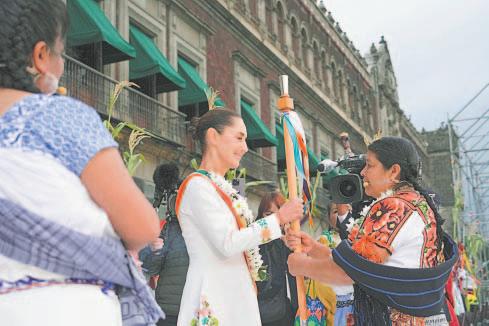CIUDAD DE MÉXICO.- La presidenta de México, Claudia Sheinbaum, recibió ayer el Bastón de Mando de parte de un grupo de mujeres indígenas y afromexicanas que celebró el hecho de tener, por vez primera, a una mujer como titular del Ejecutivo federal, y la ungieron como guía espiritual y autoridad política de los pueblos originarios.