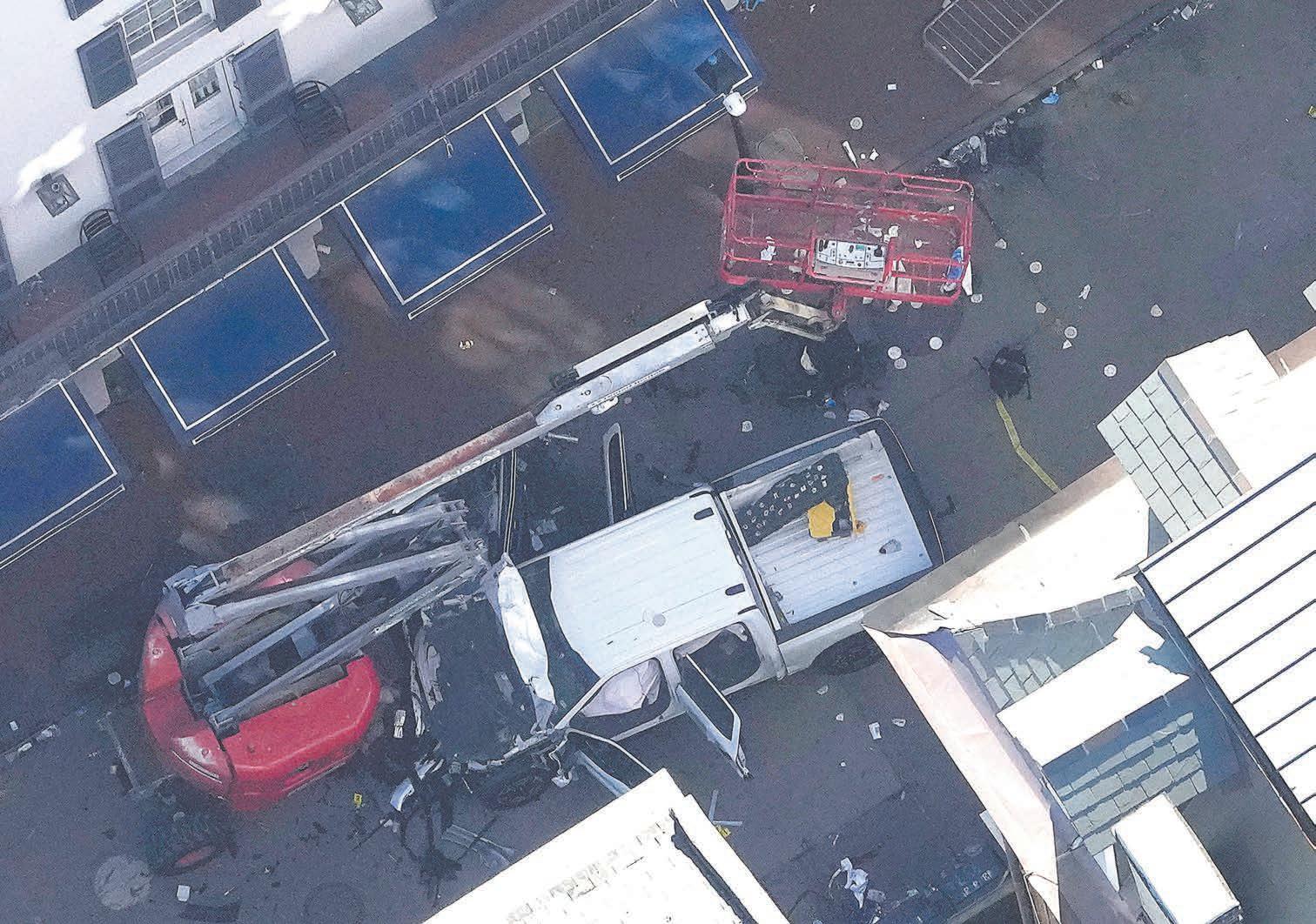 de gente celebrando el Año Nuevo. “El perpetrador (equipado con casco y chaleco antibalas) disparó contra nuestros agentes desde el vehículo cuando lo estrelló. Dos policías heridos se encuentran estables”, dijo la superintendenta de Policía, Anne Kirkpatrick, quien aseguró que el atacante “intentó atropellar a la mayor cantidad de personas posible”. “Estaba decidido a provocar la masacre y el daño que causó”, añadió. El presidente Joe Biden advirtió que “no tolerará” ataques contra su pueblo. “El FBI también me ha informado que apenas unas horas antes del atentado publicó vídeos en las redes sociales en los que dijo que estaba inspirado por el ISIS” (siglas del EI en inglés), afirmó el estadista, y dijo que las autoridades investigan “cualquier posible conexión” entre ese hecho y la explosión de una camioneta frente a un hotel en Las Vegas..