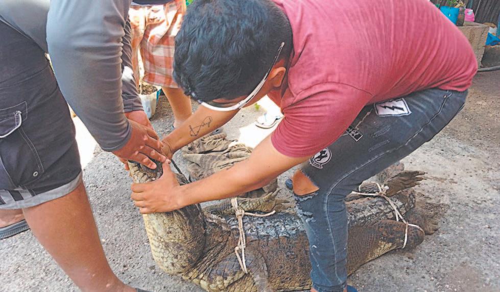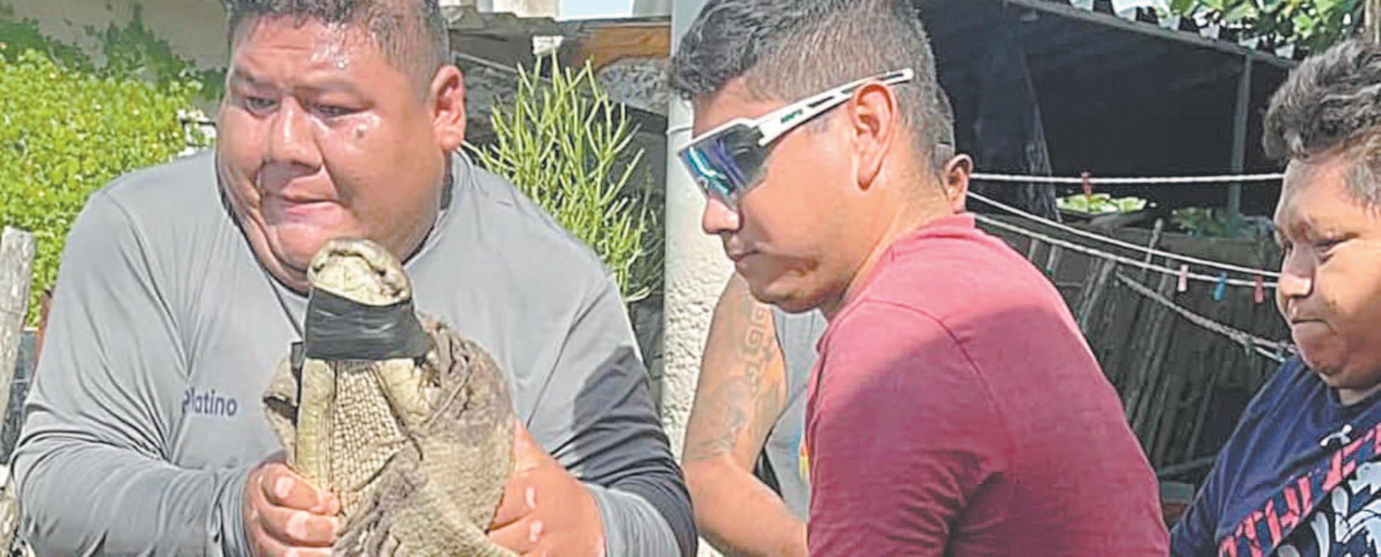 Un cocodrilo de 3 metros ingresa a un predio en Río Lagartos
