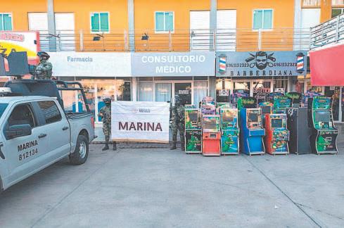 Al realizar patrullajes terrestres, con el objetivo de proporcionar seguridad y vigilancia, los elementos aseguraron las máquinas tragamonedas, las cuales operaban de manera presuntamente ilícita. Por otro lado, en coadyuvancia con la Fiscalía General de la República (FGR) en el poblado de La Noria, el personal naval detuvo una persona que contaba con orden de aprehensión por su presunta responsabilidad en el delito de robo de vehículo agravado por tentativa. El detenido y las máquinas tragamonedas fueron puestos a disposición de las autoridades competentes para la integración de la carpeta de investigación correspondiente, informó la Semar.