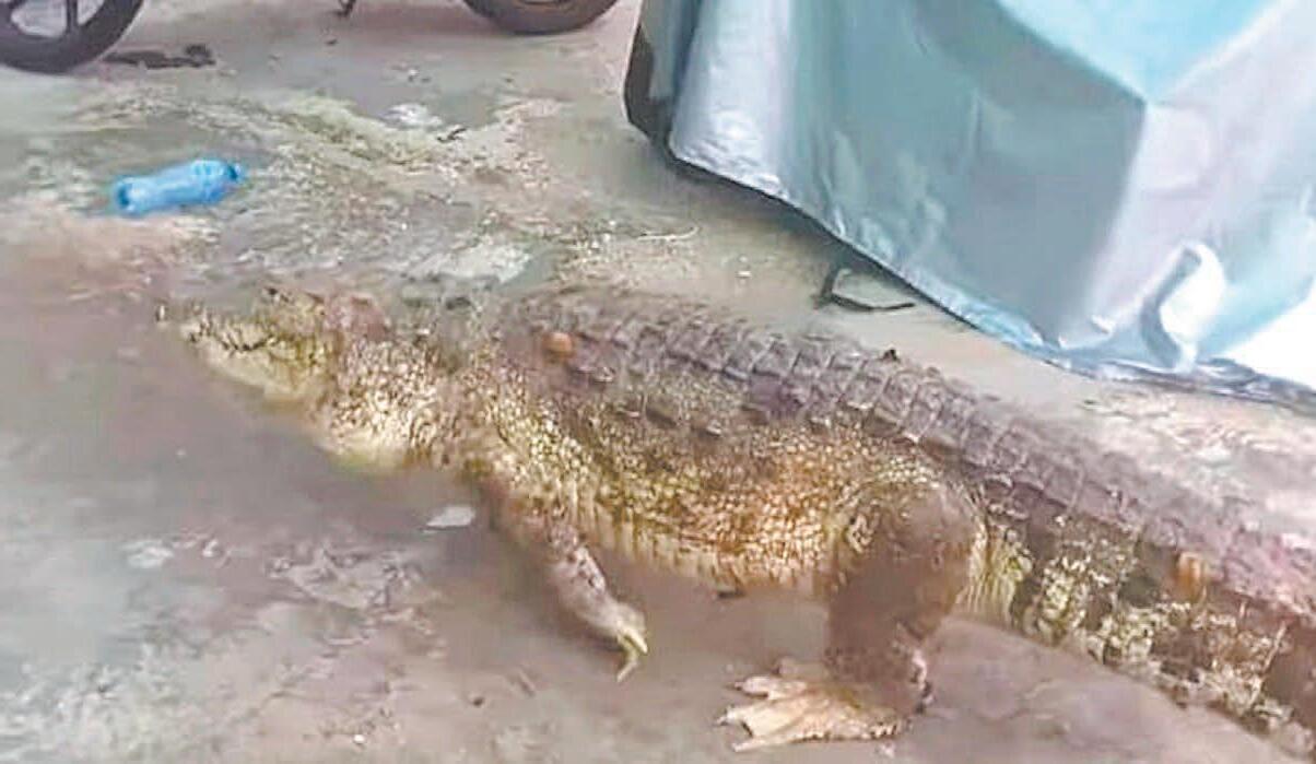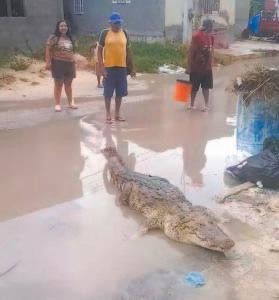 Pobladores de Río Lagartos adoptan como mascota a Spike, un cocodrilo