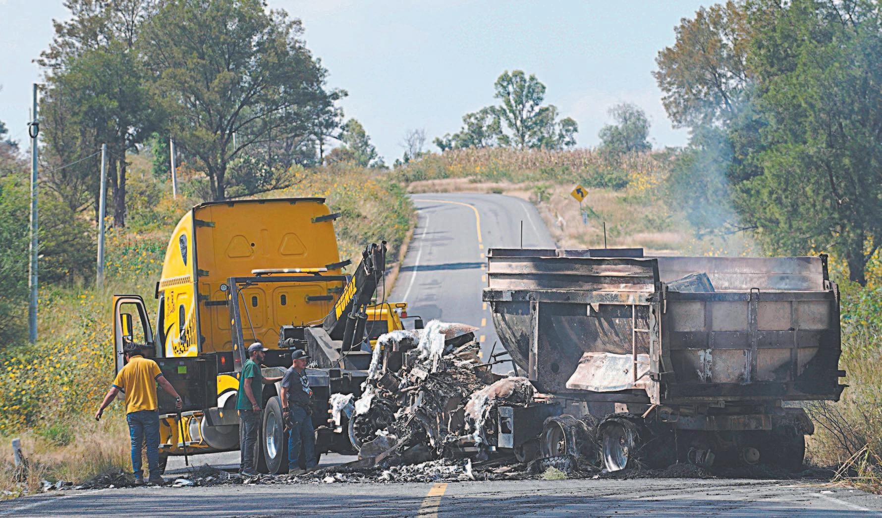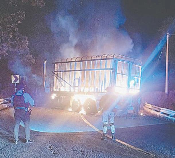 Además, un tractocamión fue atravesado e incendiado sobre uno de los sentidos de la