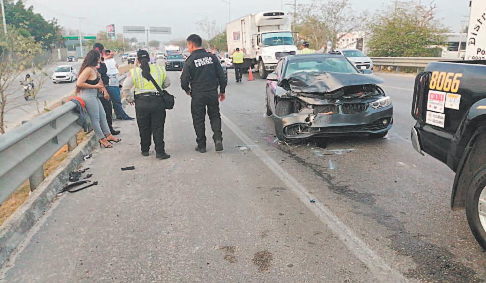 ticulares, impactados por la camioneta, cuando el conductor perdió el control y los chocó de frente.