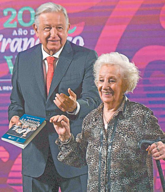 CIUDAD DE MÉXICO.- El presidente Andrés Manuel López Obrador recibió ayer en su conferencia matutina a Estela de Carlotto, fundadora de Abuelas de Plaza de Mayo, organización no gubernamental creada en 1977 a favor de los derechos humanos en Argentina.