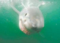 La bestia se acercó lentamente hasta quedar a escasos centímetros de la cara de Graham, momento en el cual el tiburón abrió sus fauces rosadas y mordió la cámara.