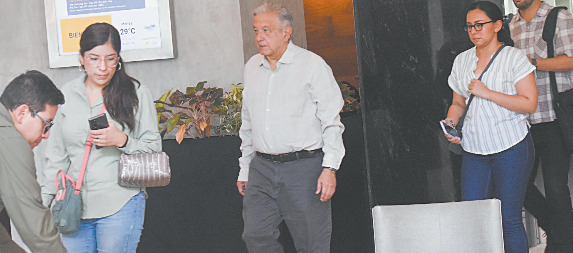 CON un ejemplar de PORESTO! en mano, el Presidente López Obrador comenzó ayer sus actividades en Mérida. Se dirigió a la Base Aérea No. 8, donde se reunió con el gobernador Mauricio Vila Dosal, con quien analizó las obras que los Gobiernos federal y estatal realizan en el Estado.- (Diana Várguez)