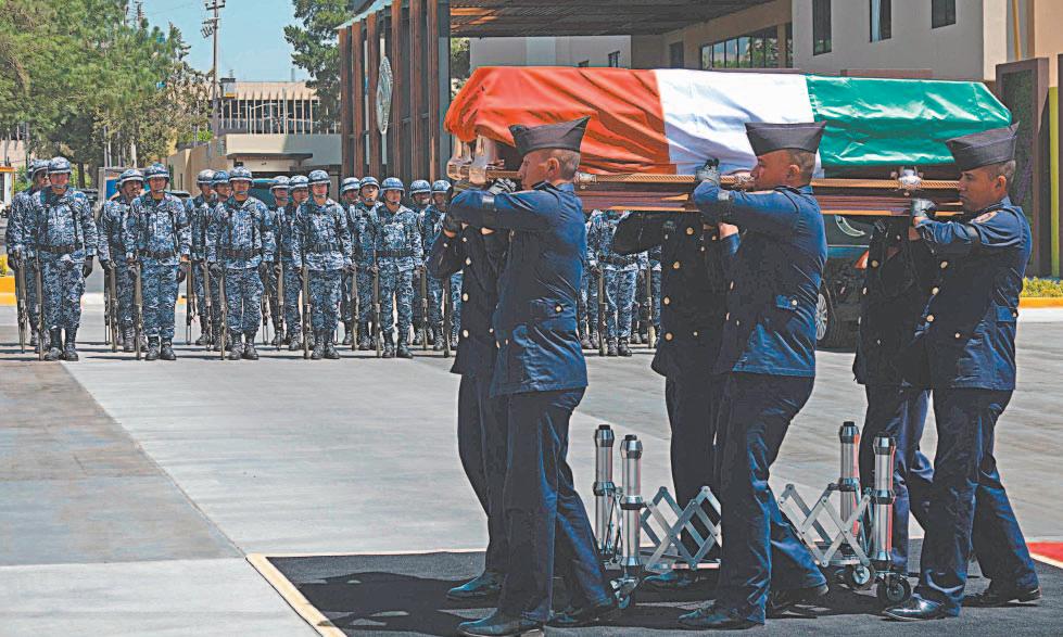 Durante una breve Ceremonia de Honores Fúnebres en el Velatorio Militar, el general José Gerardo Vega Rivera, comandante de la Fuerza Aérea Mexicana entregó a los familiares una Bandera Nacional.
